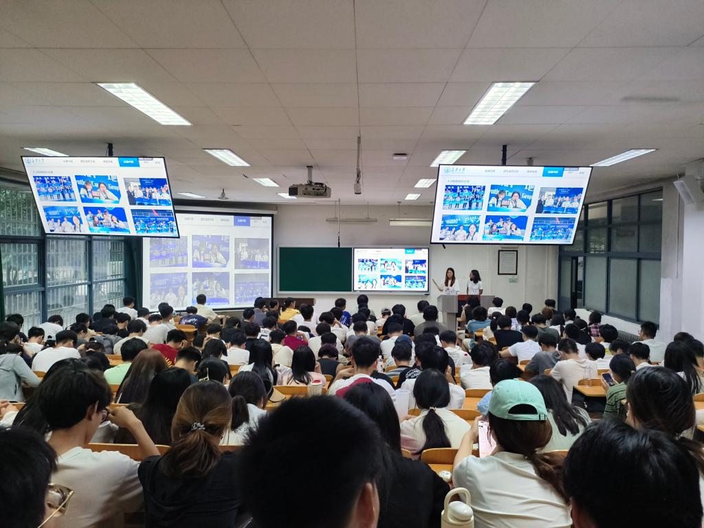 随后,获得特等奖的重磁电组四位参赛同学分享了他们的参赛经验。他们从赛事介绍、团队组建与协作、备赛策略、竞赛内容与技巧等方面,详细介绍了参赛过程和心得体会。结合自身经历,分享了在知识积累、心理调节、临场发挥等方面的具体方法,并对学弟学妹们提出了参与竞赛的鼓励。