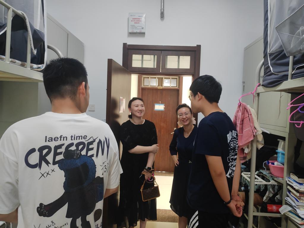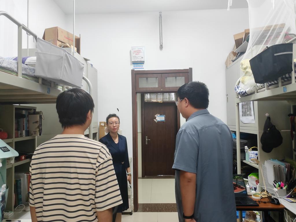 为切实保障期末阶段校园安全稳定工作有序开展,全方位了解学生思想动态,强化安全知识教育,7月7日,新葡的京集团35222vip党委副书记潘迎、思政班主任刘艳艳以及全体辅导员深入学生宿舍,开展暑期离校前走访慰问活动,精准解决学生实际困难,引导学生以良好状态安全、愉快地迎接暑假。
