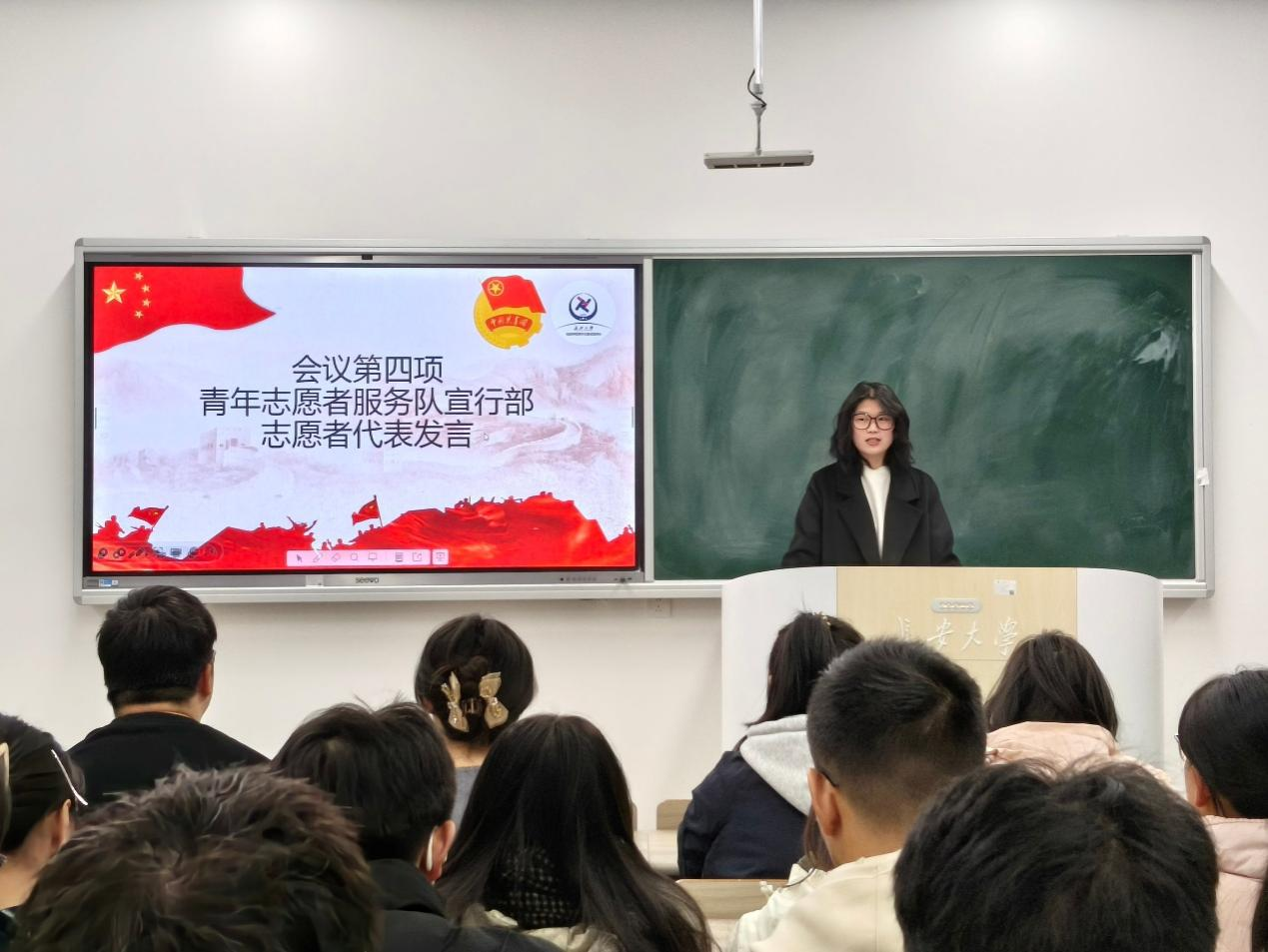接着,为弘扬志愿精神,会议对优秀志愿者进行表彰,以榜样力量激励全体成员接续奋进。表彰过后,优秀志愿者代表依次分享心得,结合参与校园服务、社区帮扶等活动的亲身经历,生动诠释了“帮助他人、服务社会” 的志愿内涵。