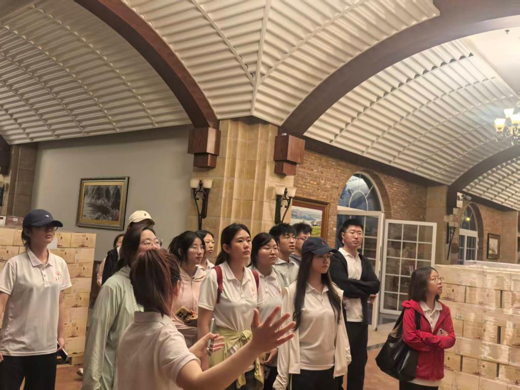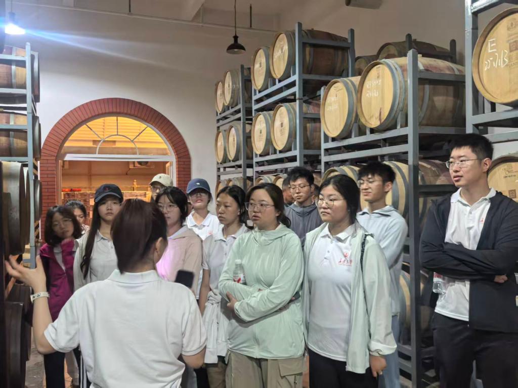 实践队深入天塞酒庄等当地企业,开展特色产业高质量发展调研。系统考察葡萄种植、酿造工艺、营销推广及产业融合情况,调研总结了“葡萄酒+生态”的绿色发展模式与“工业+文化+旅游”的产业融合路径,为地方产业与乡村振兴积累了详实的一手资料与高校观察。