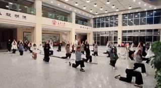 为备战本次健身瑜伽比赛,全体参赛师生精心筹备、系统训练。学院特邀校队同学提供专业指导,结合瑜伽动作要领、呼吸节奏与肢体协调要求定制训练计划,从基础体式规范到组合流畅度、队形整齐度逐一细致讲解纠正。训练期间,采取线上线下结合的模式,线下集中练习整套瑜伽组合、统一节奏与站位,线上每日打卡并通过视频反馈打磨细节,在专业指导下,队员们从动作生疏、节奏不一逐步变得舒展规范、整齐优美,团队的凝聚力与专业性在训练中不断提升。