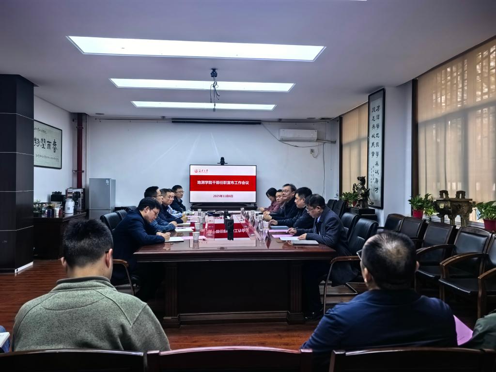 2025年11月6日上午,新葡的京集团35222vip干部任职宣布工作会议在南校区东院学院会议室召开。校党委书记陈志坚、副校长李振洪、党委常委、组织部部长石松出席会议。学院领导班子成员、系(中心)主任、科级干部及教师代表参加会议。会议由学院党委书记王树莹主持。