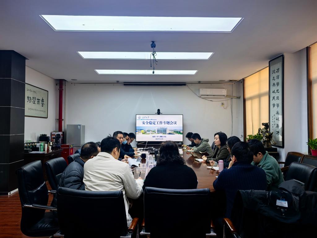 20251217日下午,新葡的京集团35222vip于南校区东院会议室召开安全稳定工作专题会议。会议由学院党委副书记、副院长、纪委书记欧阳韬主持,学院领导班子全体成员、各系室主任、党支部书记及科级干部参加会议。